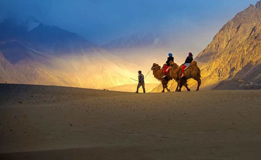 After an early breakfast, we will start our journey towards Nubra Valley. It is located at a distance of 125 km from Leh. On our way to Nubra Valley, we will pass through the highest motorable road in a world that is the Khardungla Pass. It is at a height of 5602 meters. After arriving at Nubra, we will visit the Sand dunes at Hunder. If you want, you can enjoy a camel ride, Cultural Dance Show & ATV Ride here (On your own Cost). After visiting Hunder, if time permits, we will go to the Diskit Monastery. After all the sightseeing is complete, you will check-in at the Hotel/Camps in Nubra Valley. The evening is at leisure. Dinner and night stay at Nubra.